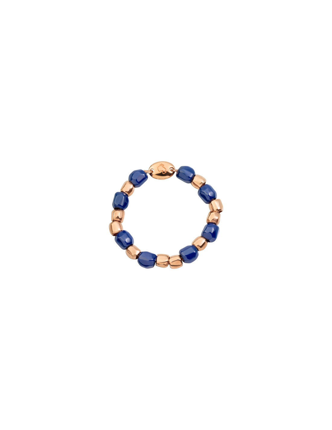 anello mini granelli morbido con catena in oro rosa 9K, granelli in oro rosa 9K e ceramica blu