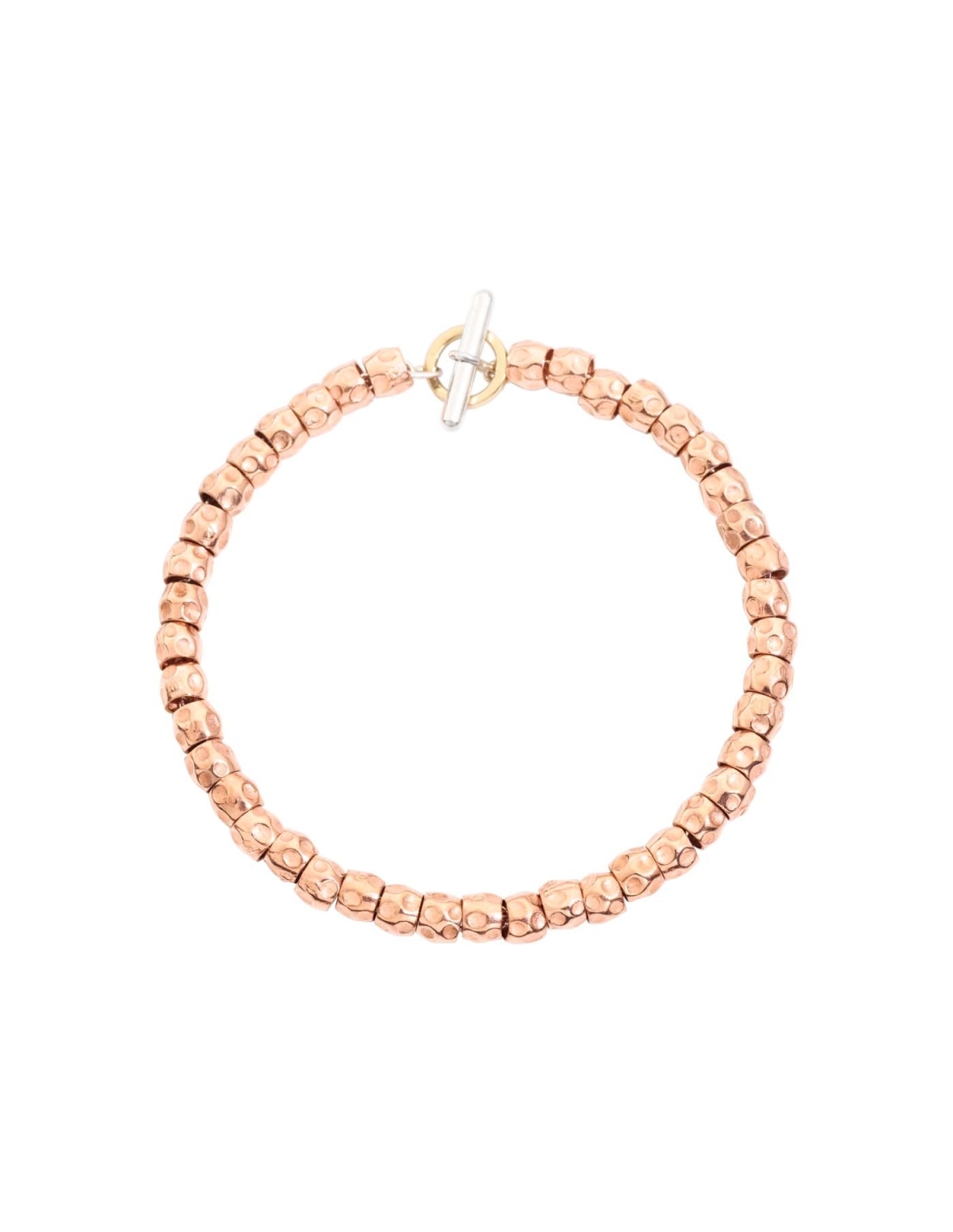 Bracciale Granelli in oro rosa 9K con catena e t-bar in argento 925 e anello brisè in oro giallo 18K. Ago in argento 925 incluso.