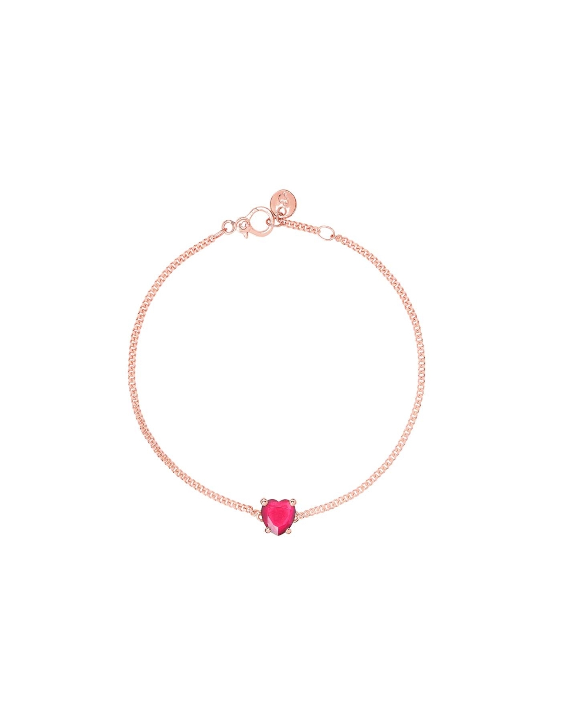 Bracciale Cuore in oro rosa 9K con 1 rubino sintetico (ct 0.6). Piastrina in oro rosa 9K.