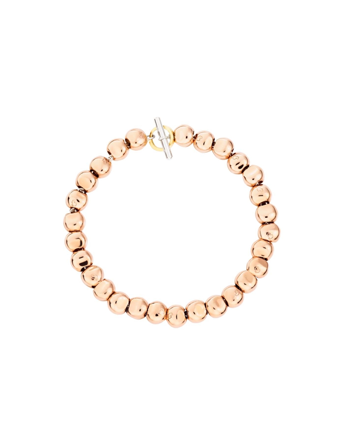 Bracciale Pepita in oro rosa 9K con catena e t-bar in argento 925 e anello brisè in oro giallo 18K. Ago in argento 925 incluso.