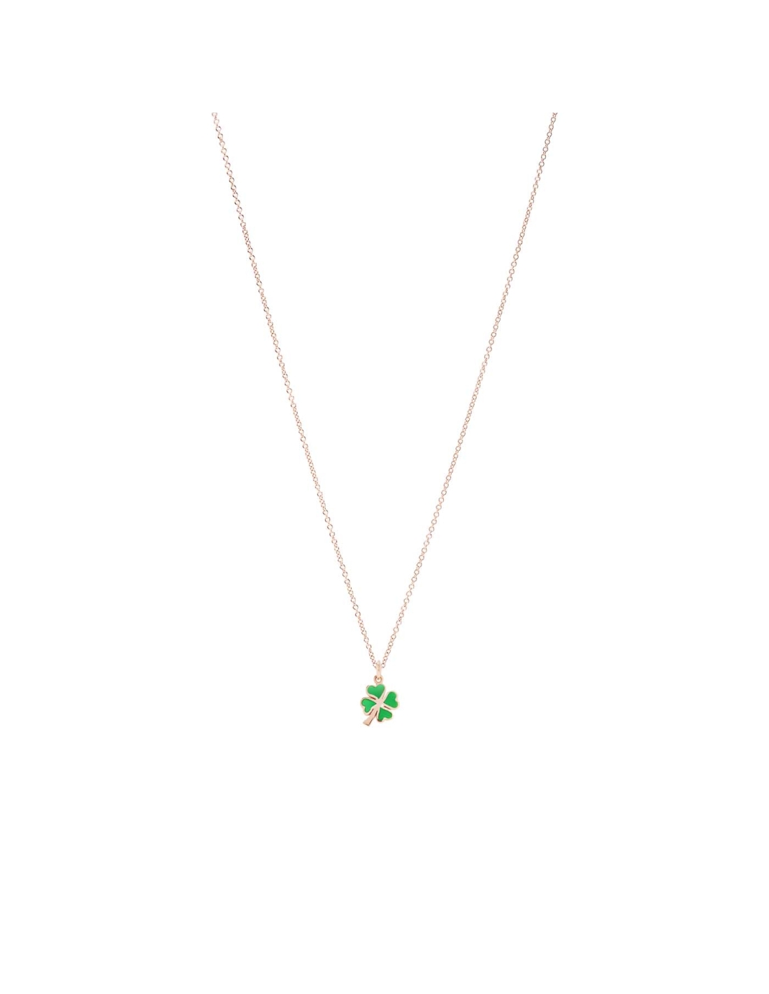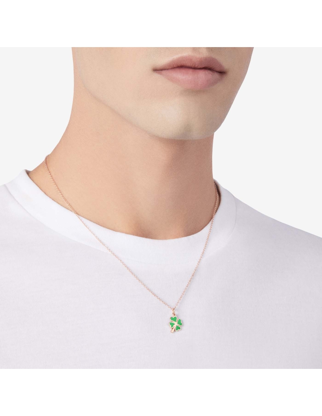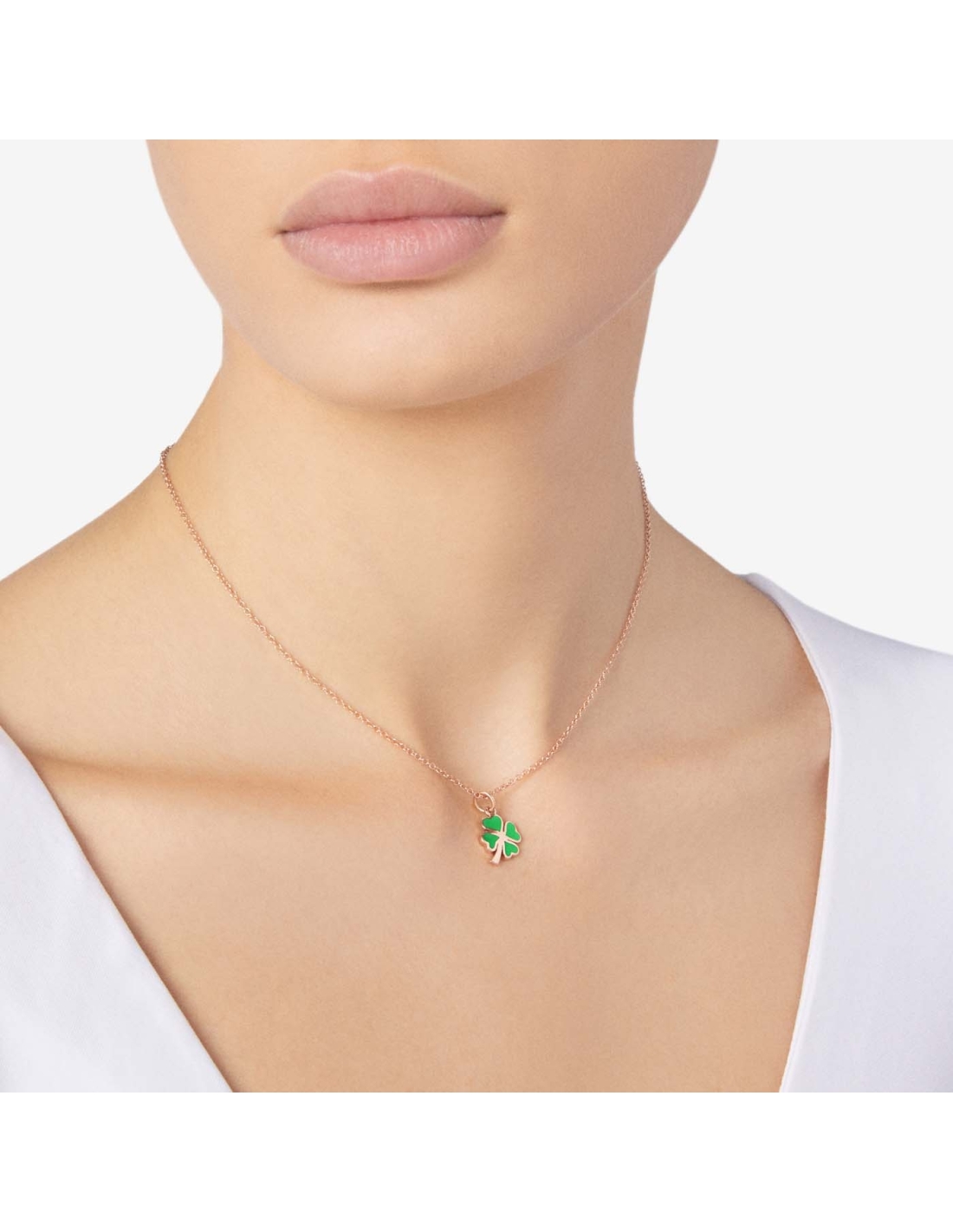 Ciondolo quadrifoglio in oro rosa 9K con smalto cattedrale verde. Modello grande.