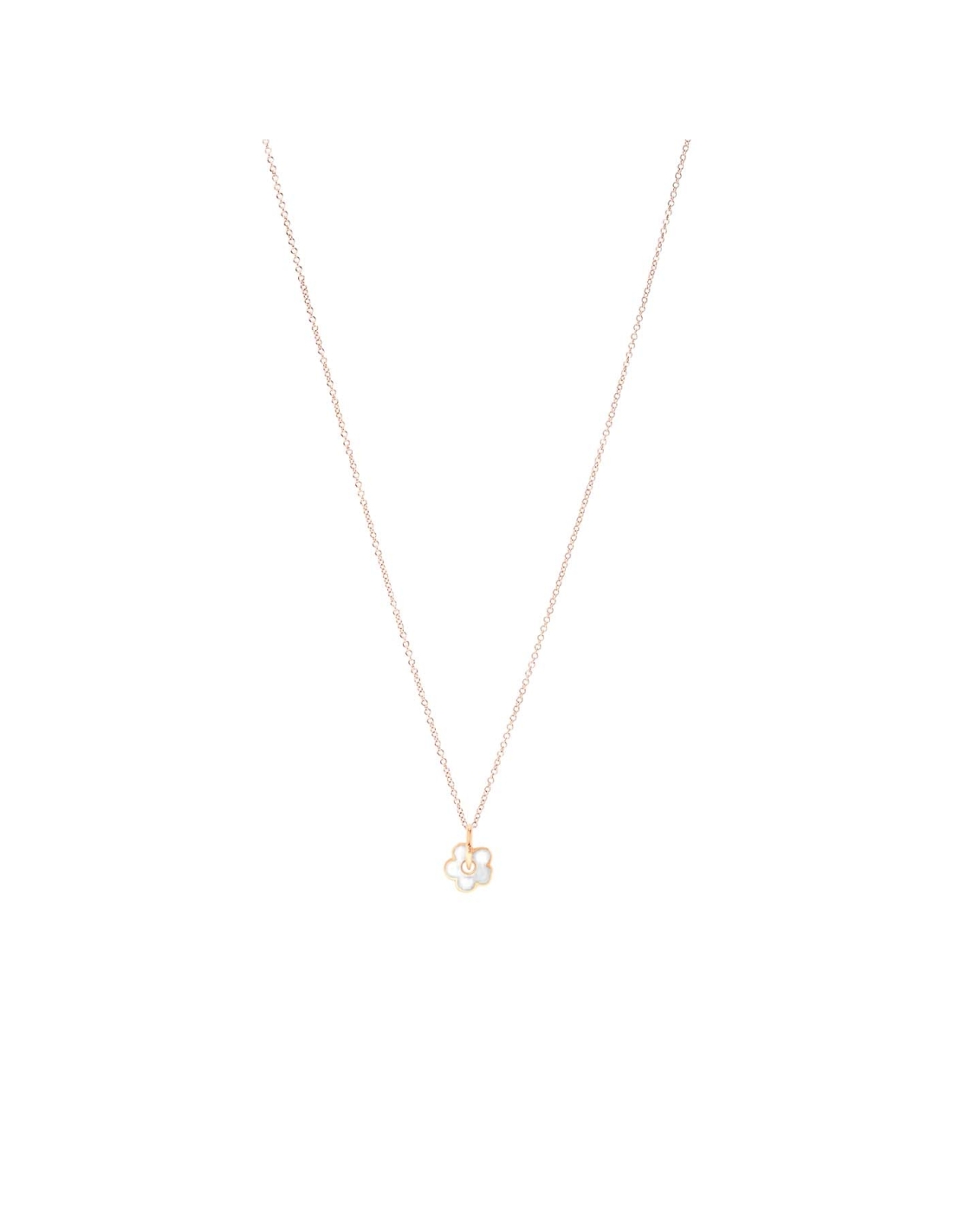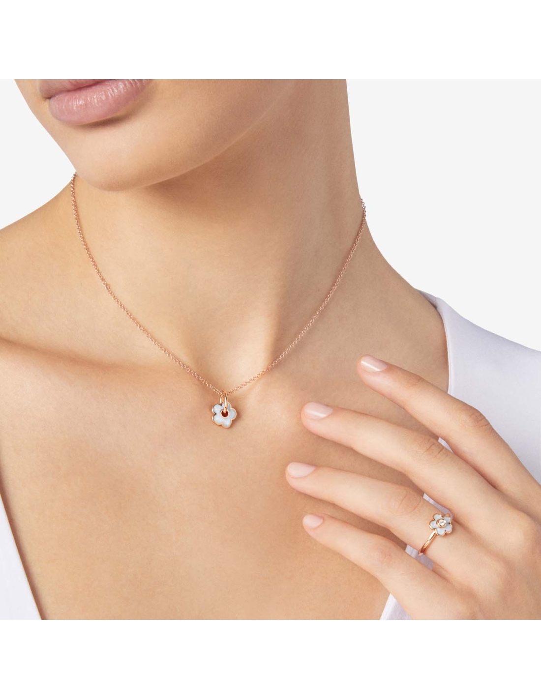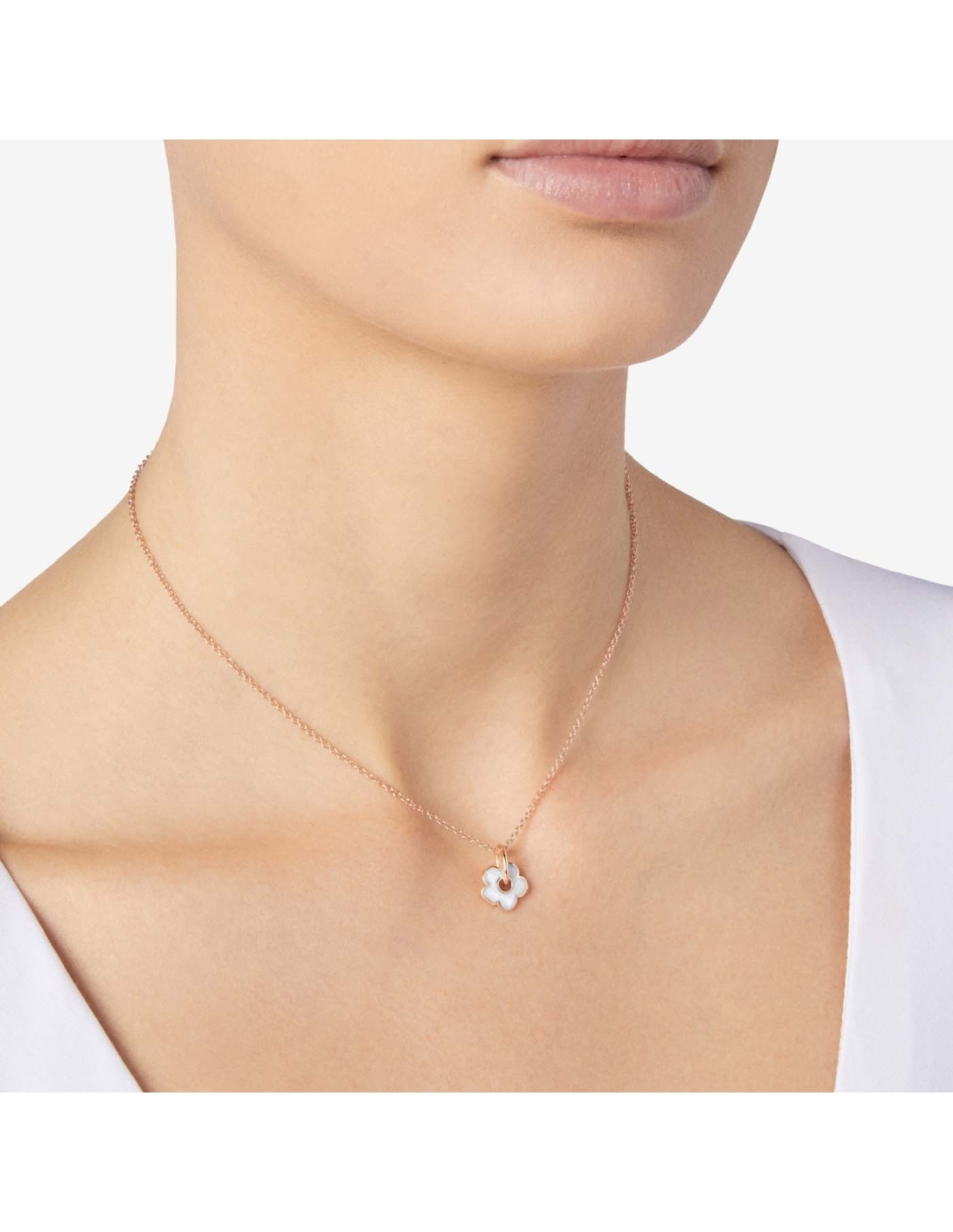 Ciondolo fiore in oro rosa 9K con smalto cattedrale effetto madreperla. Modello grande.