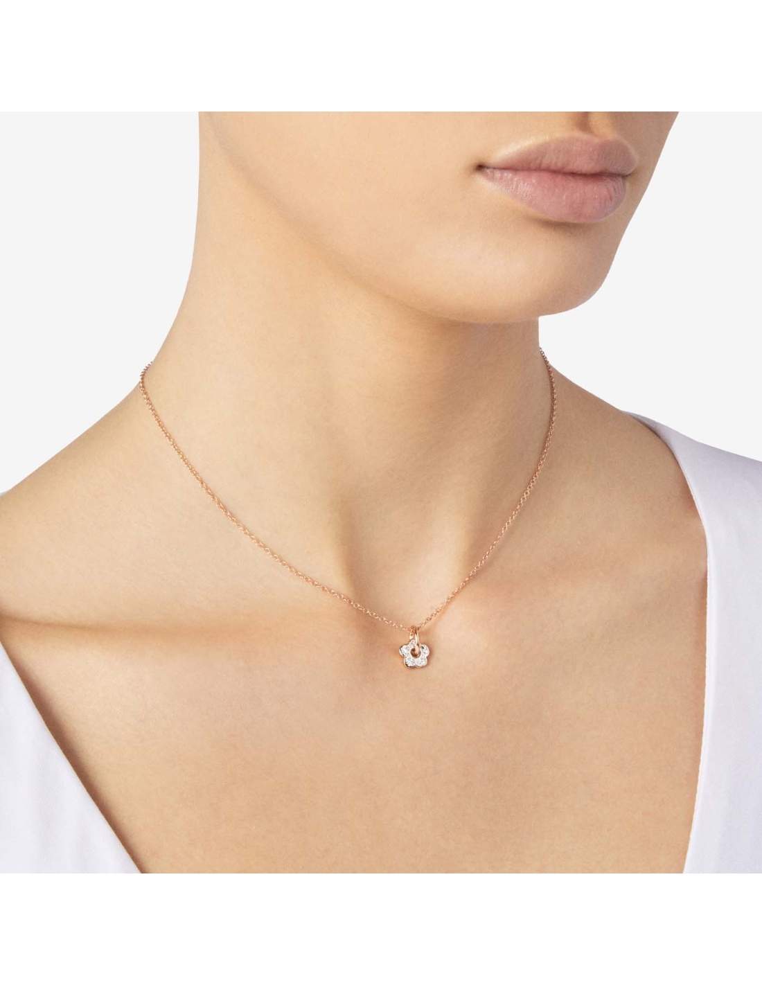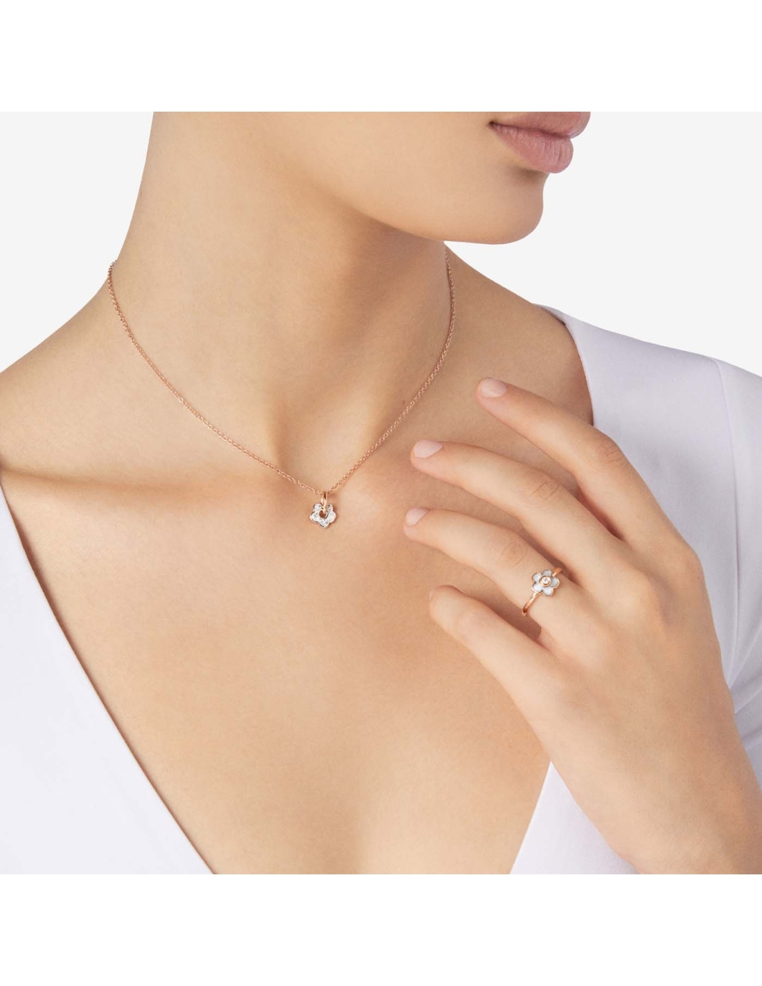 Ciondolo fiore in oro rosa 9K rodiato con 11 diamanti bianchi (ct 0.14). Modello piccolo.