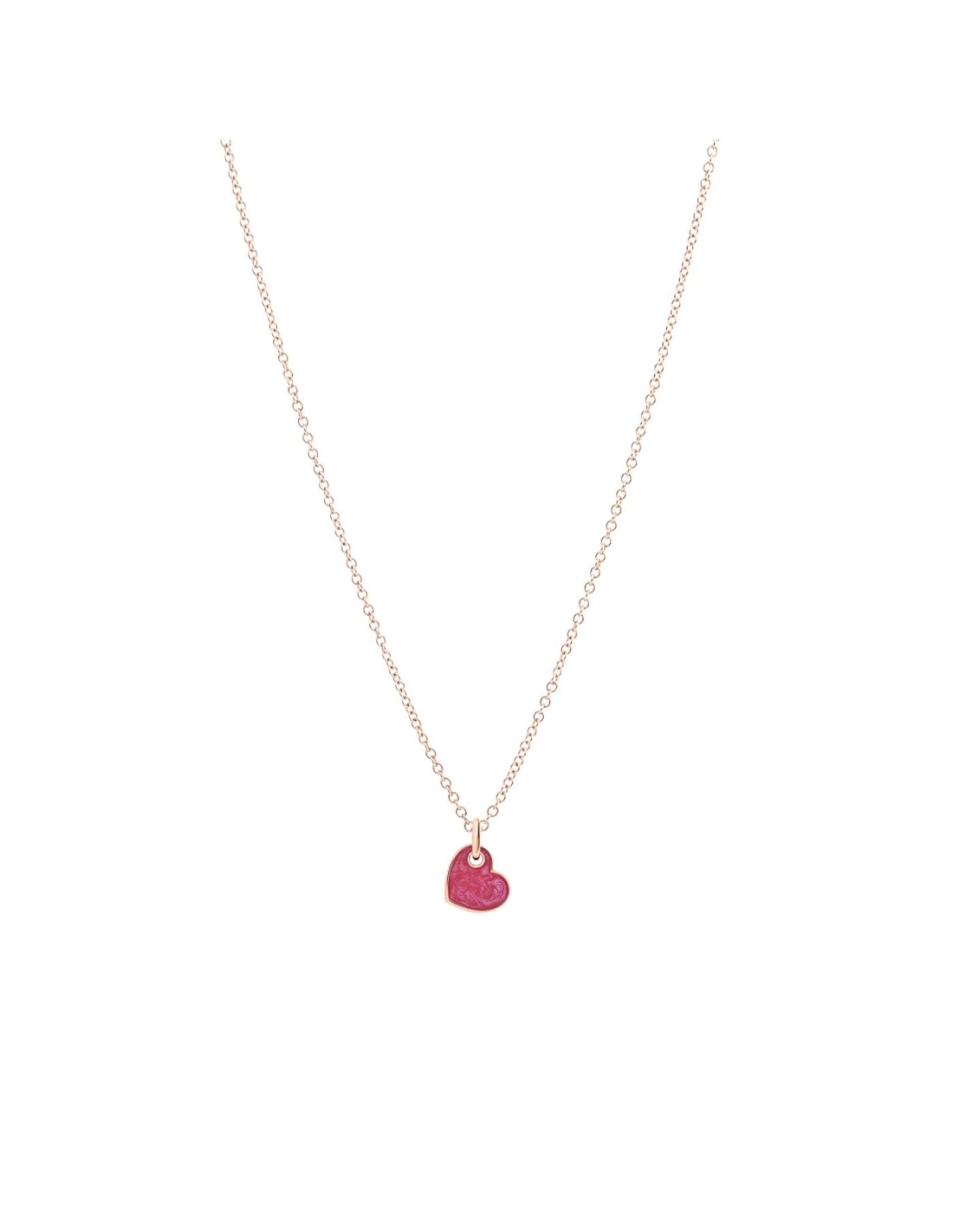 Ciondolo Cuore in oro rosa 9K con smalto rosso effetto madre perla. Modello piccolo.