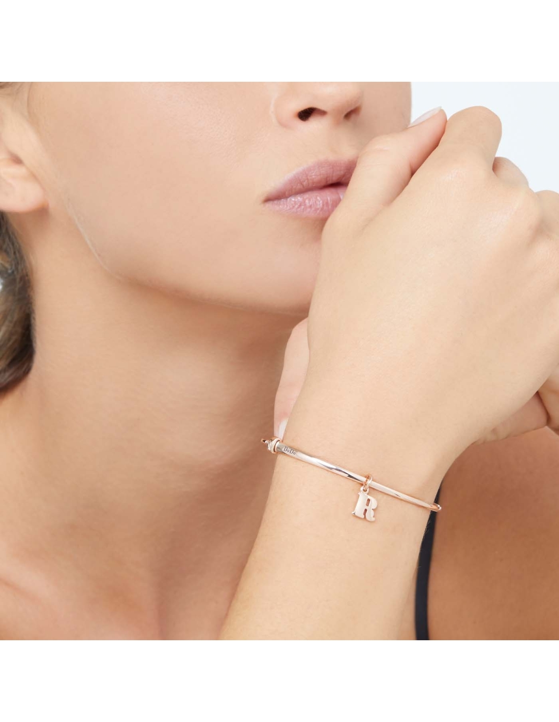Ciondolo lettera "R" in oro rosa 9K.