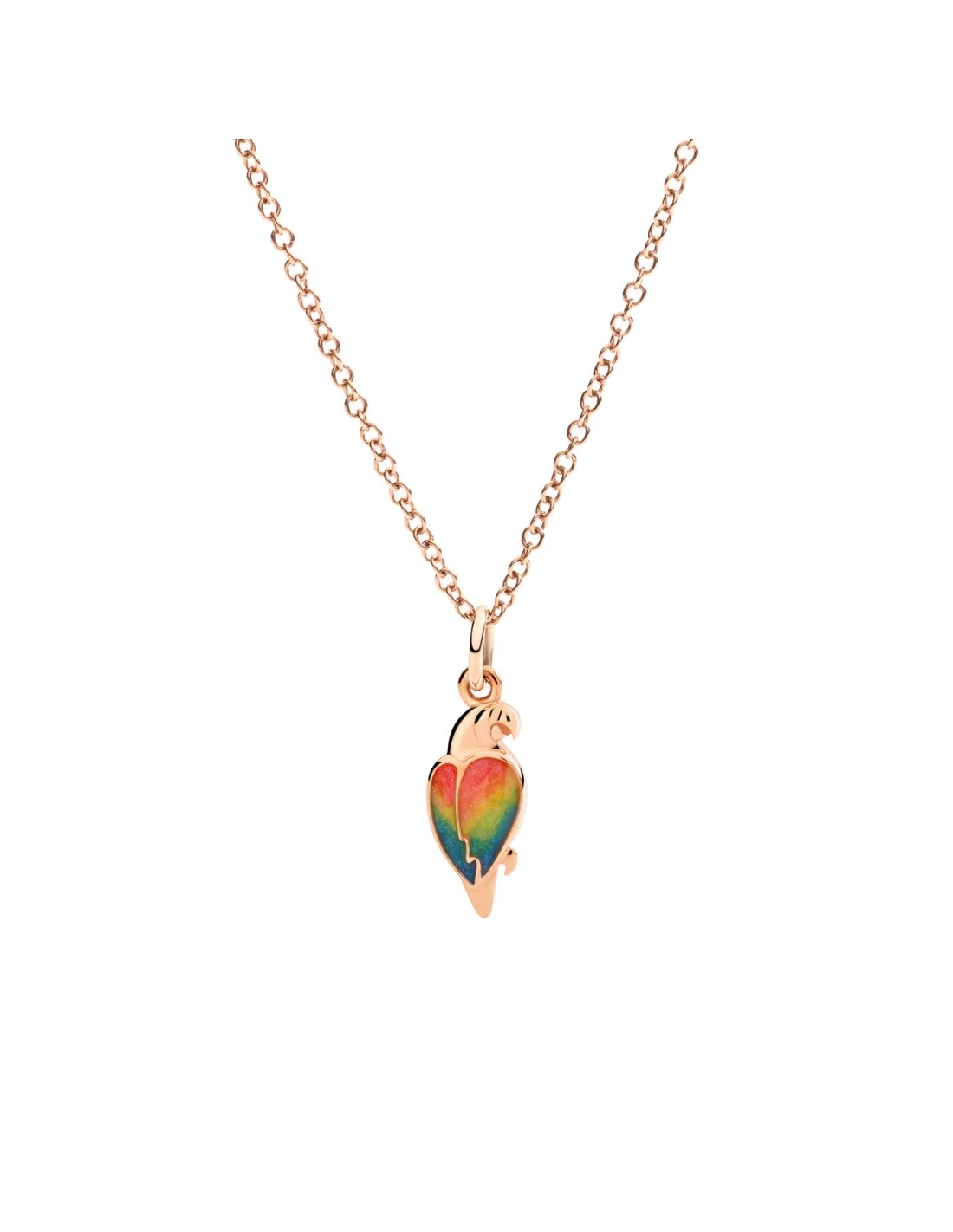Ciondolo pappagallo in oro rosa e smalto perlato multicolor