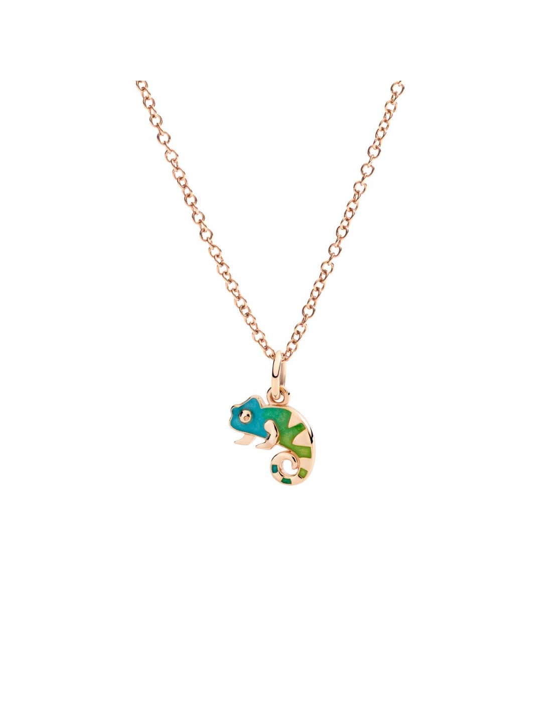 Ciondolo camaleonte in oro rosa e smalto perlato verde