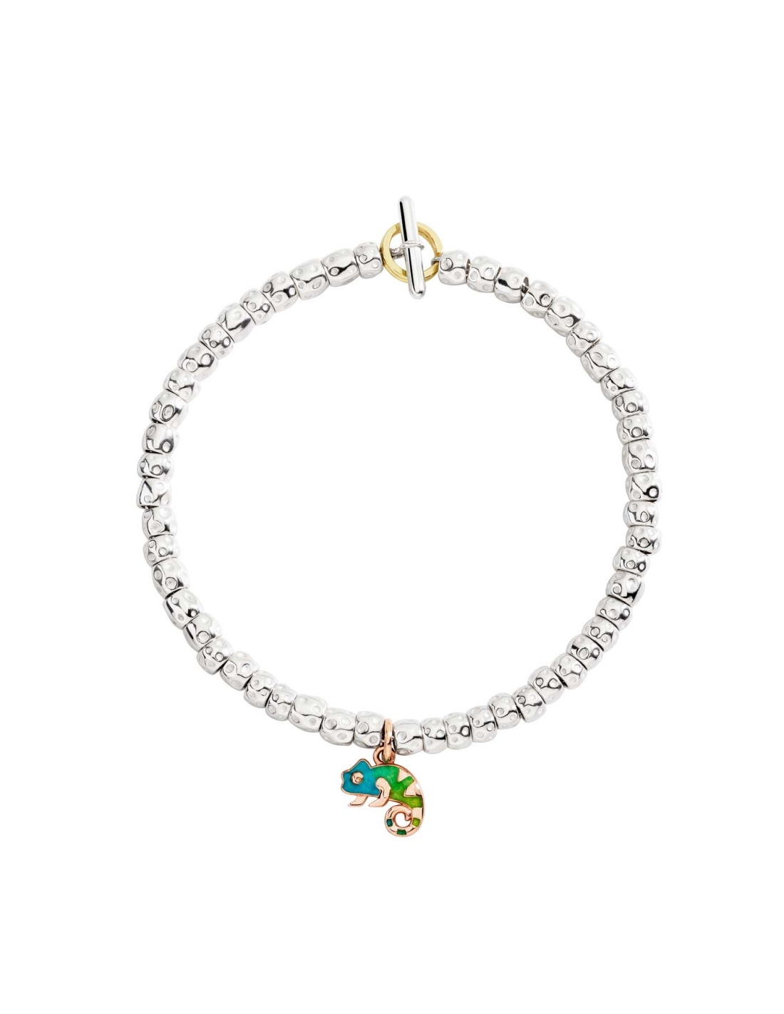 Ciondolo camaleonte in oro rosa 9K e smalto perlato verde.
