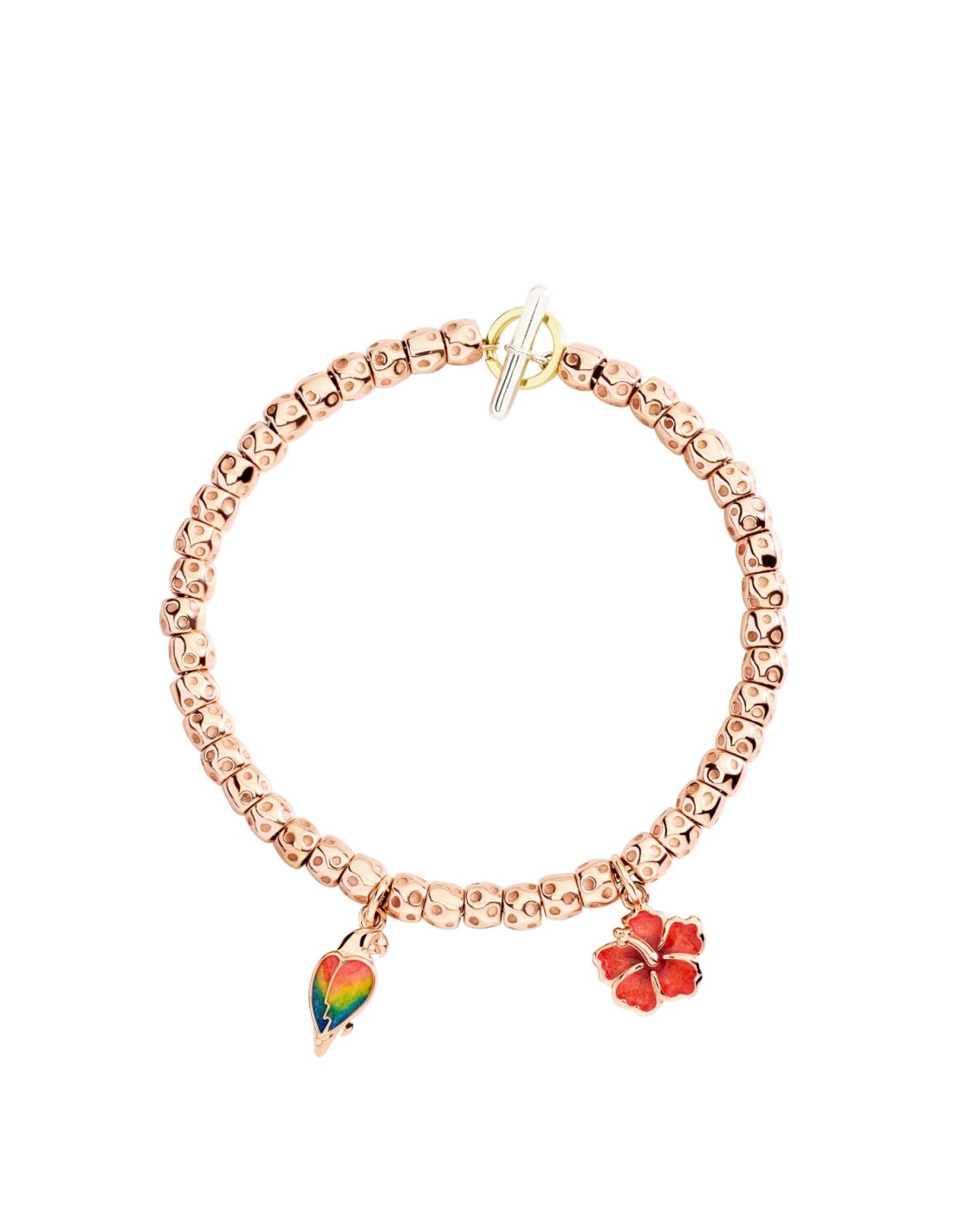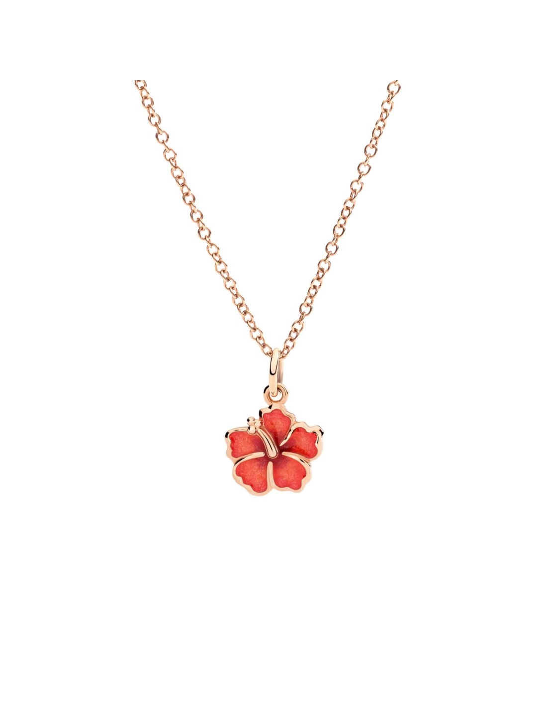 Ciondolo fiore ibisco in oro rosa 9K e smalto perlato arancio.