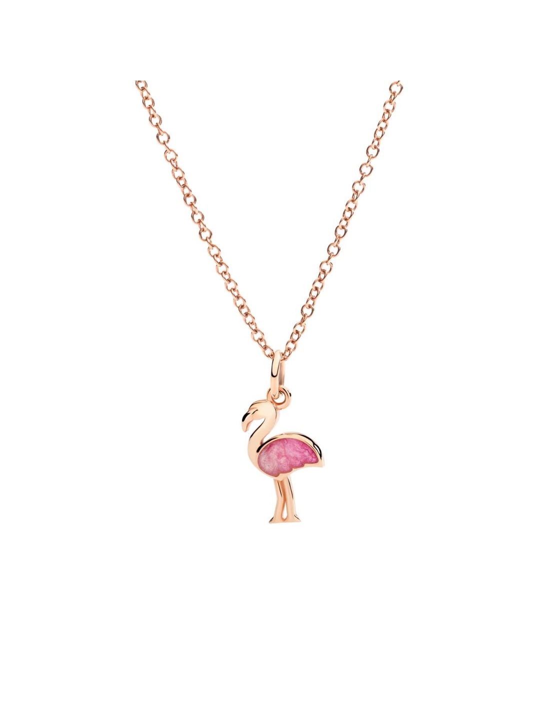 Ciondolo fenicottero in oro rosa e smalto rosa