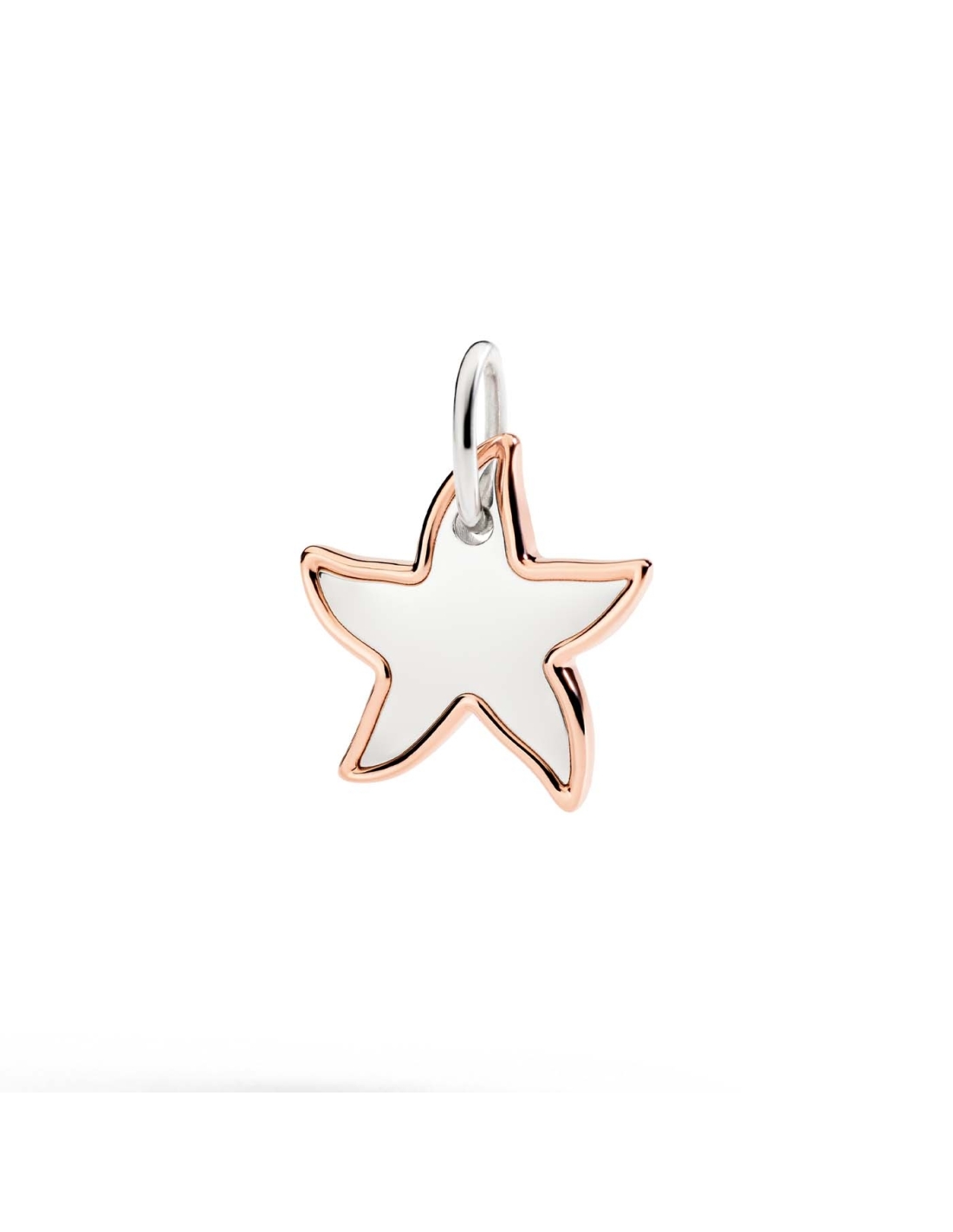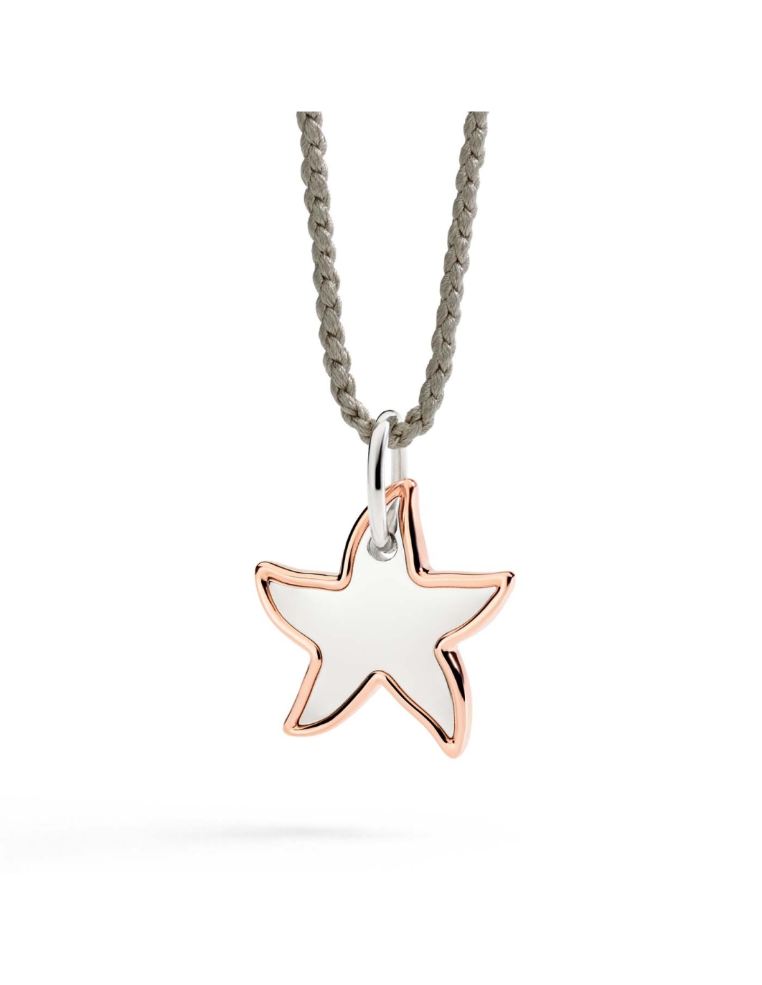 Ciondolo XL Stellina in argento 925 e dettaglio profilo in oro rosa 9K. Cordino in seta torchon incluso.