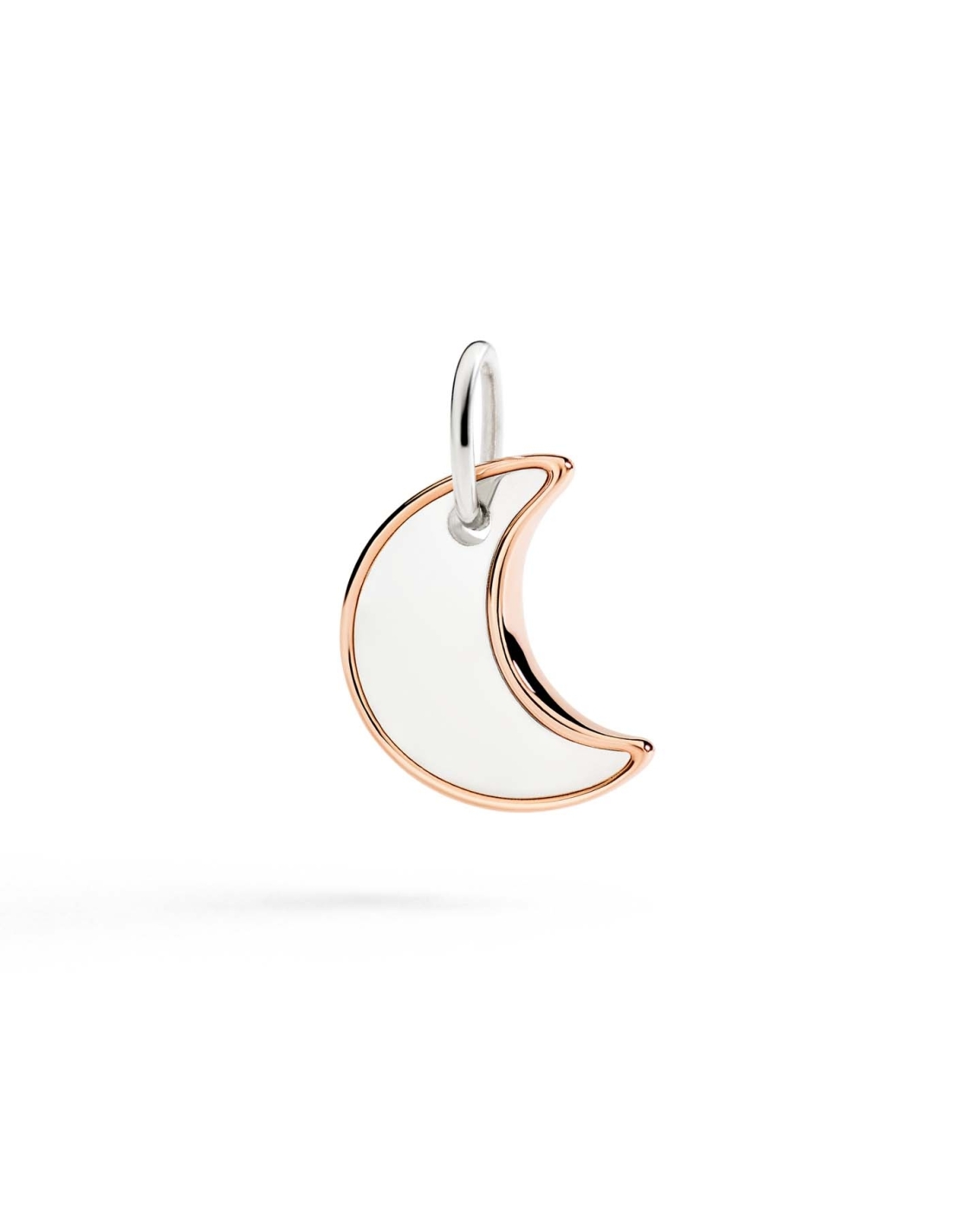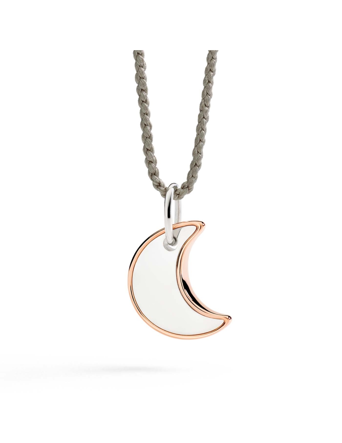 Ciondolo XL Luna in argento 925 e dettaglio profilo in oro rosa 9K. Cordino in seta torchon incluso.