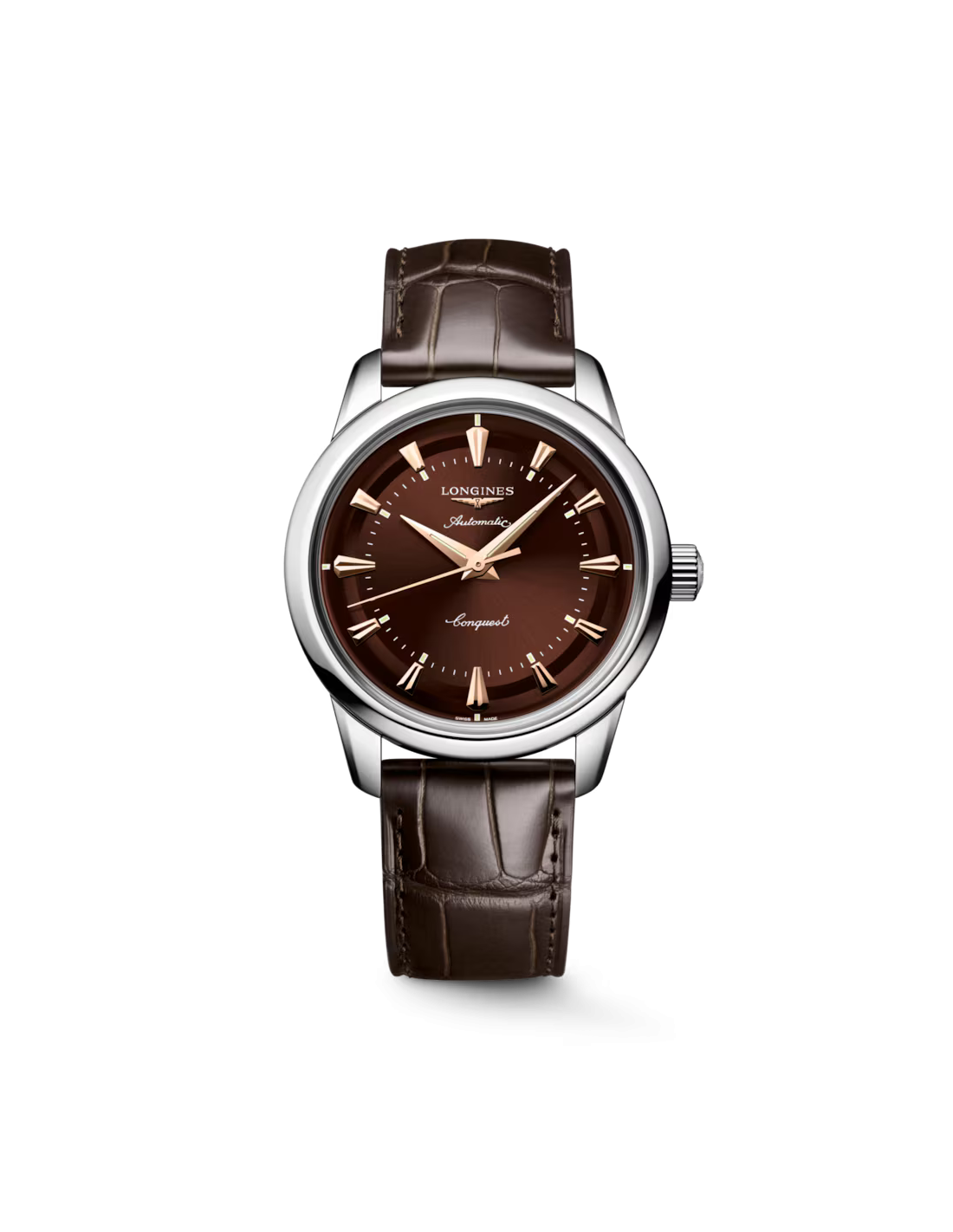 Longines Conquest Heritage, Automatico, diam. 38 mm, Acciaio inossidabile, Quadrante marrone, Cinturino in alligatore.