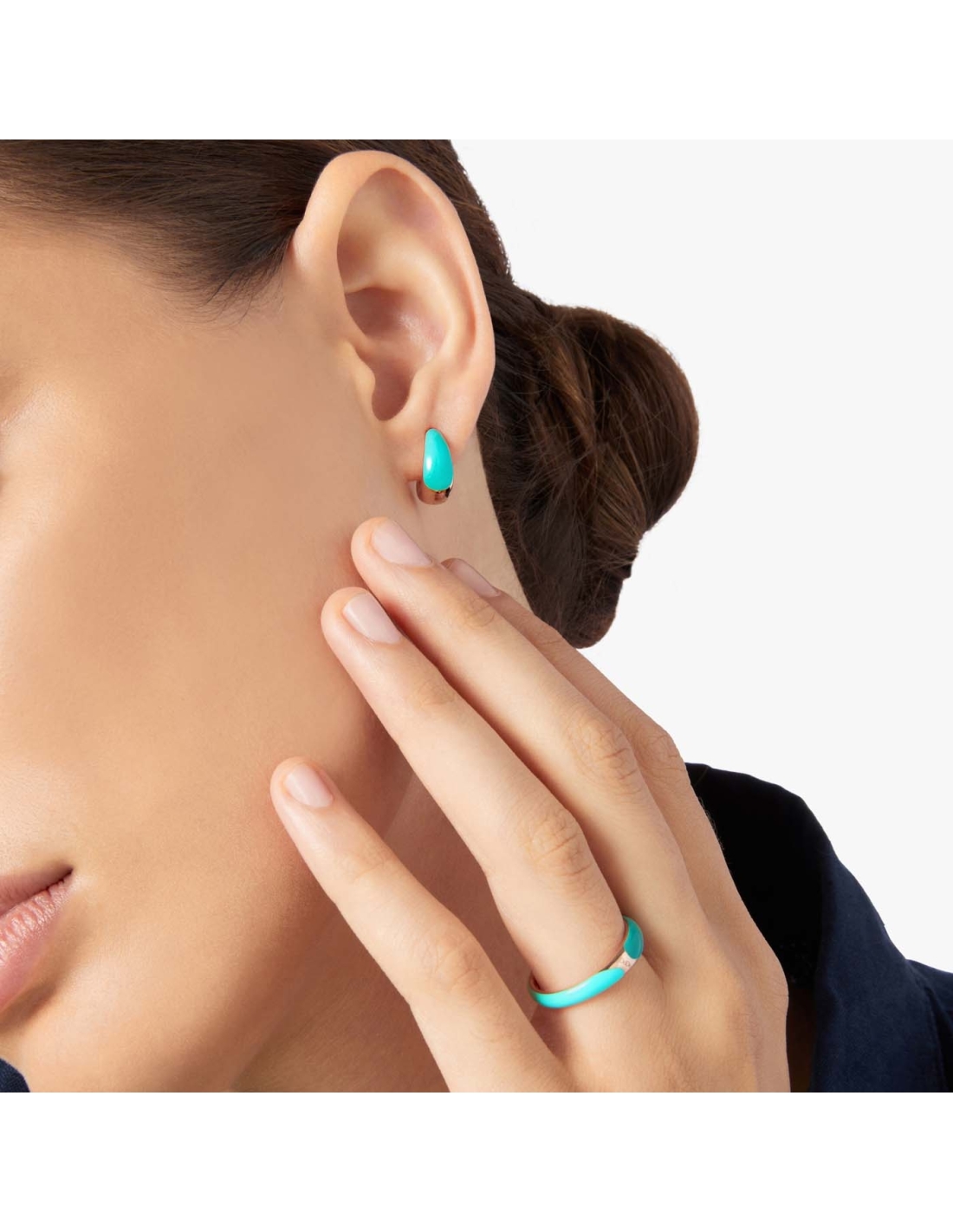 Orecchino Rondelle in argento dorato oro rosa 18K con smalto turchese. Mezzo paio.