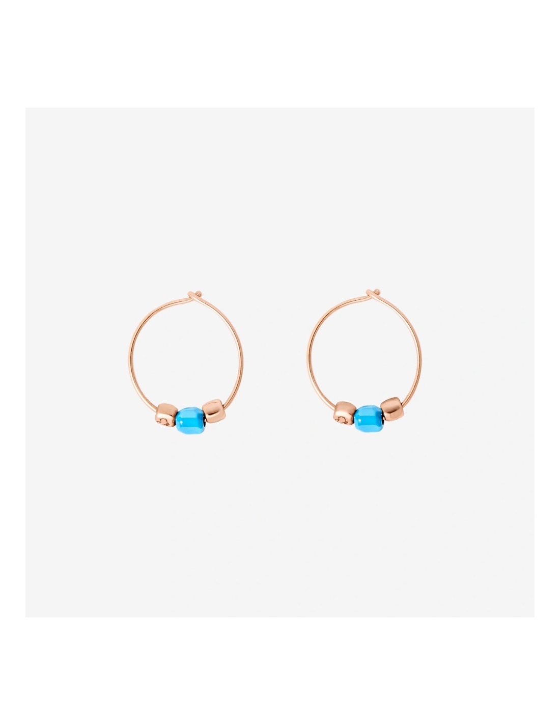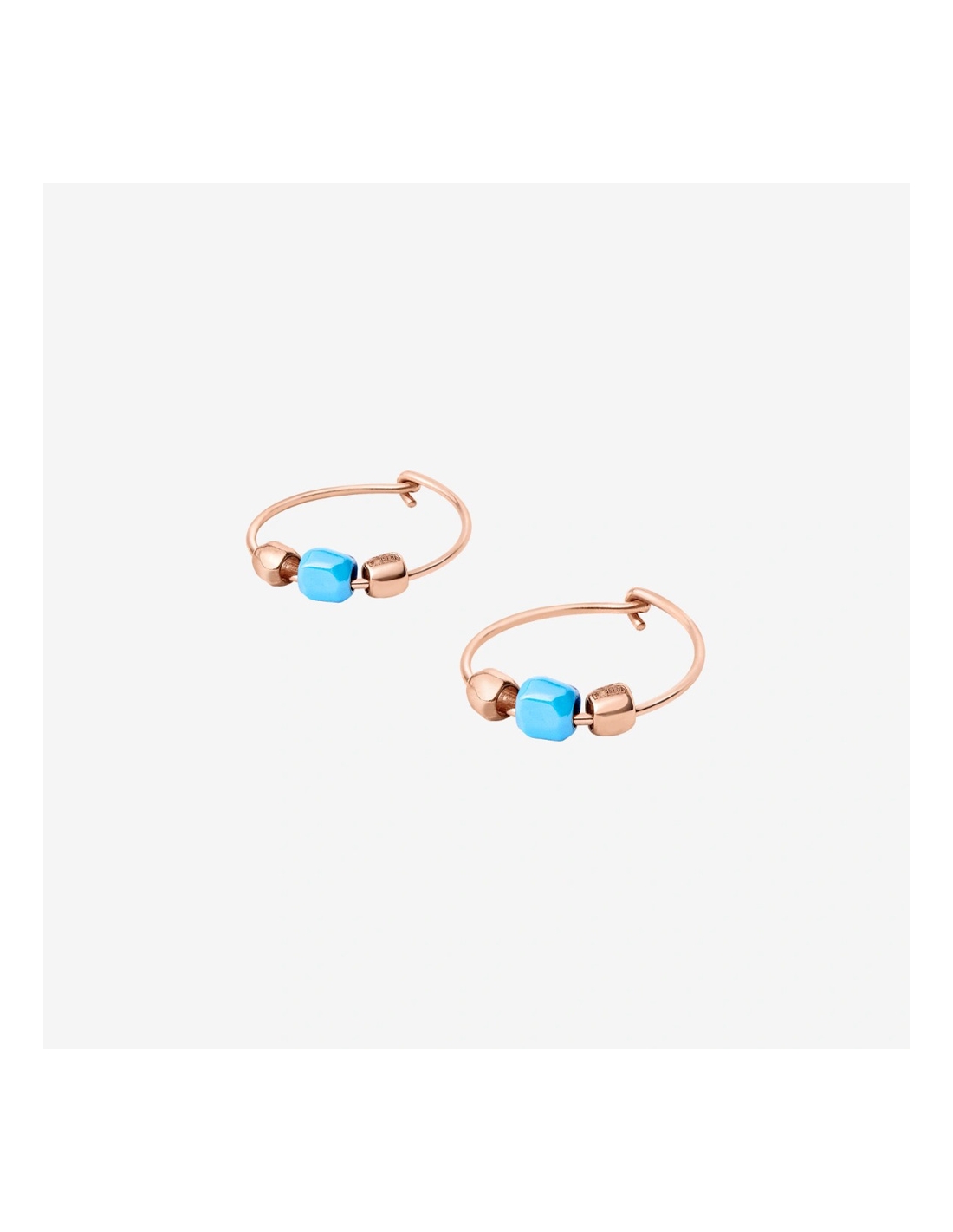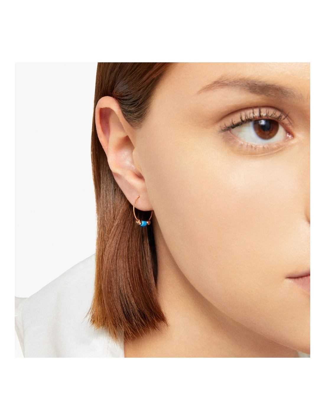 orecchini cerchio in oro rosa 9K con mini granelli in oro rosa 9K e ceramica turchese, modello piccolo - paio