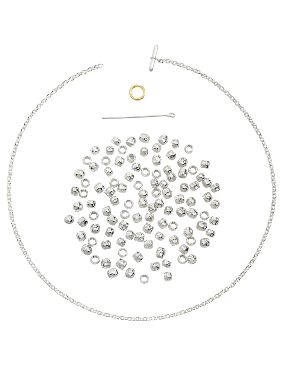 Collana Granelli in argento 925 con catena in argento 925 e anello brisè in oro giallo 18K. Ago in argento 925 incluso.