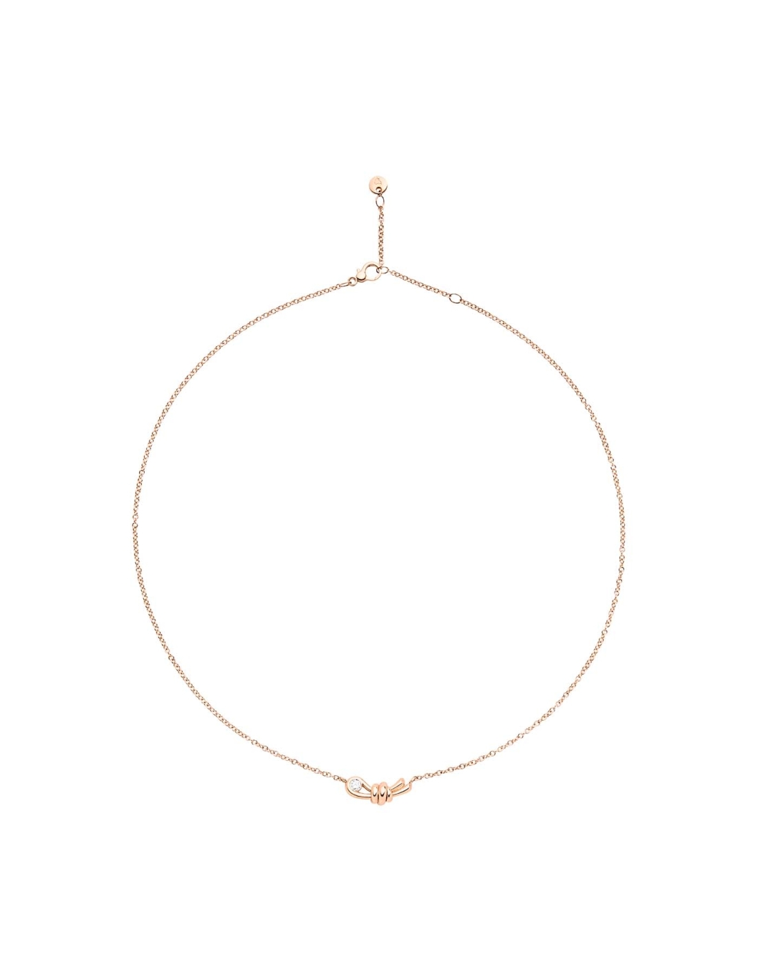 Collana Nodo in oro rosa 9K con 1 diamante bianco (ct 0.06). Piastrina in oro rosa 9K.