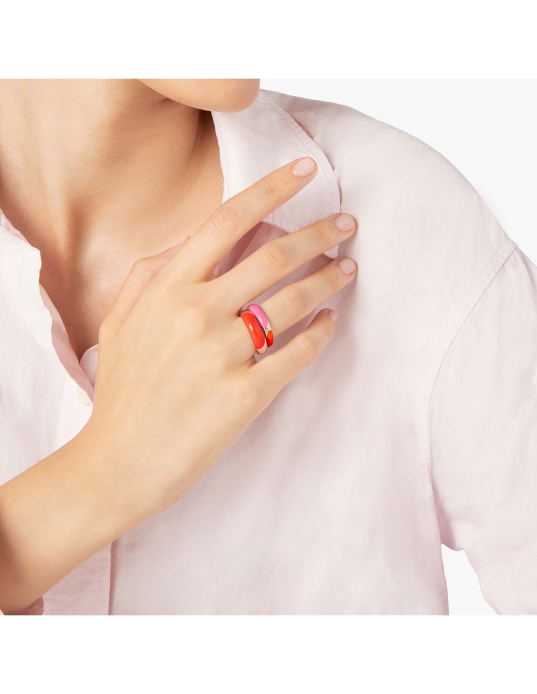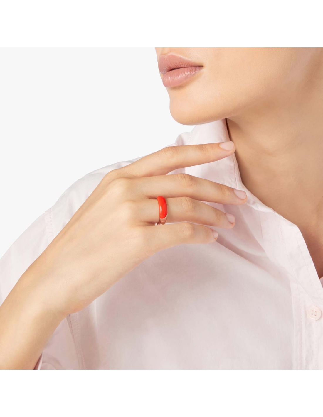 Anello Rondelle in argento dorato oro rosa 18K con smalto rosso.