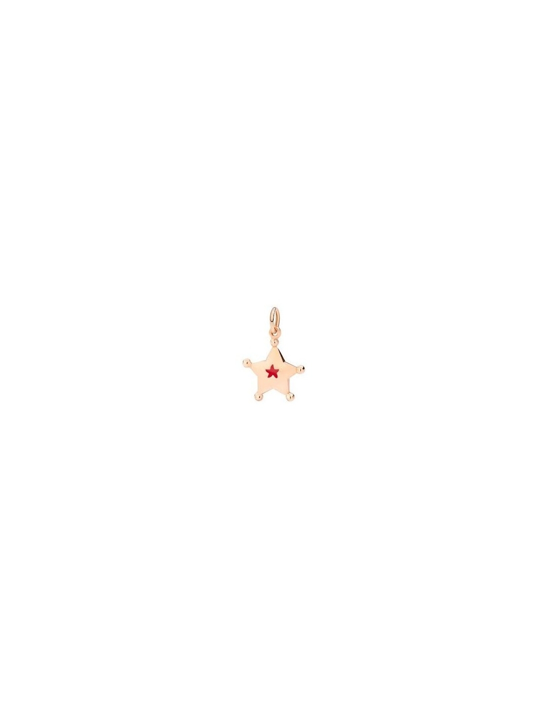 Charm Stellina Sceriffo in oro rosa 9k e smalto rosso. Cordino nero incluso.