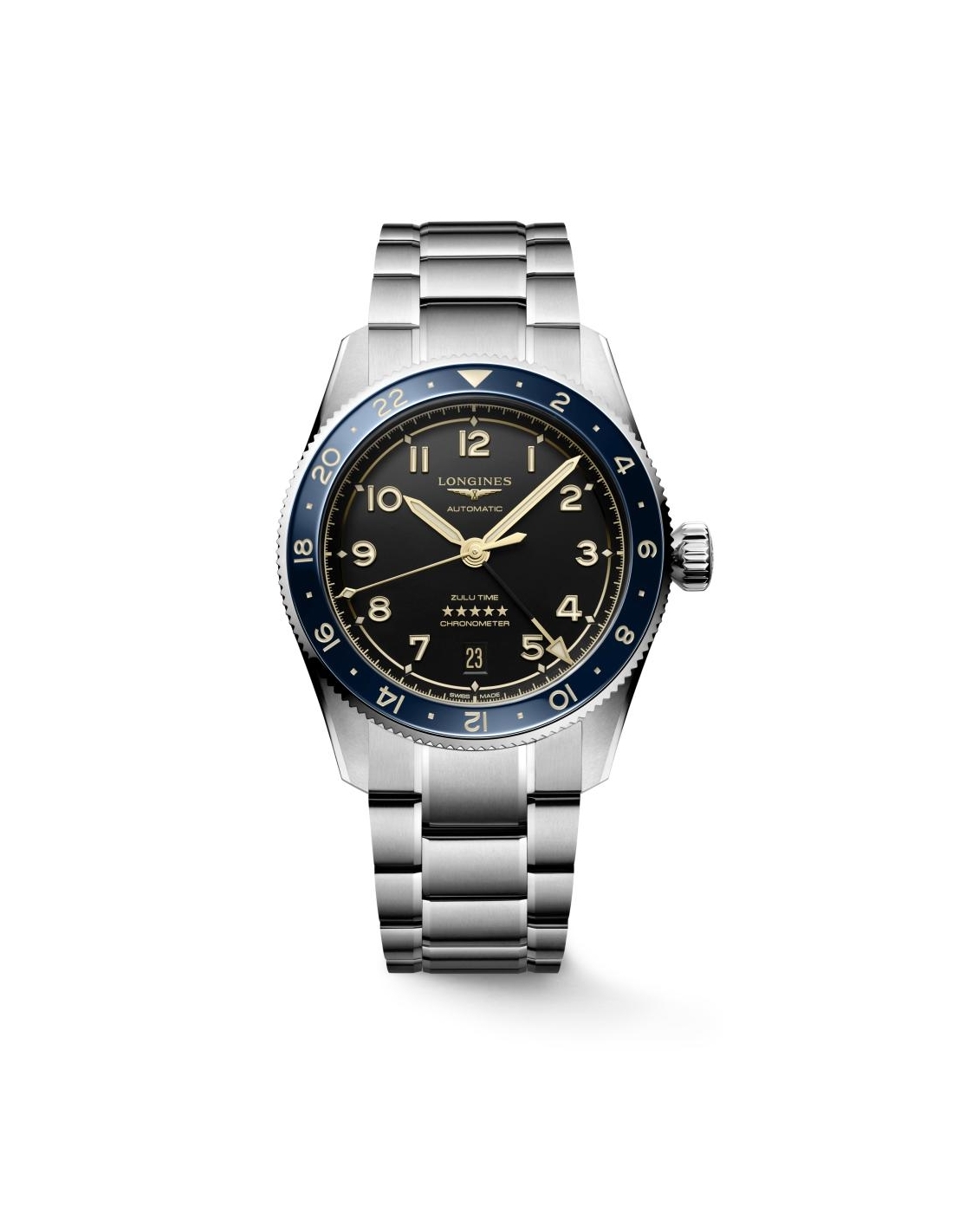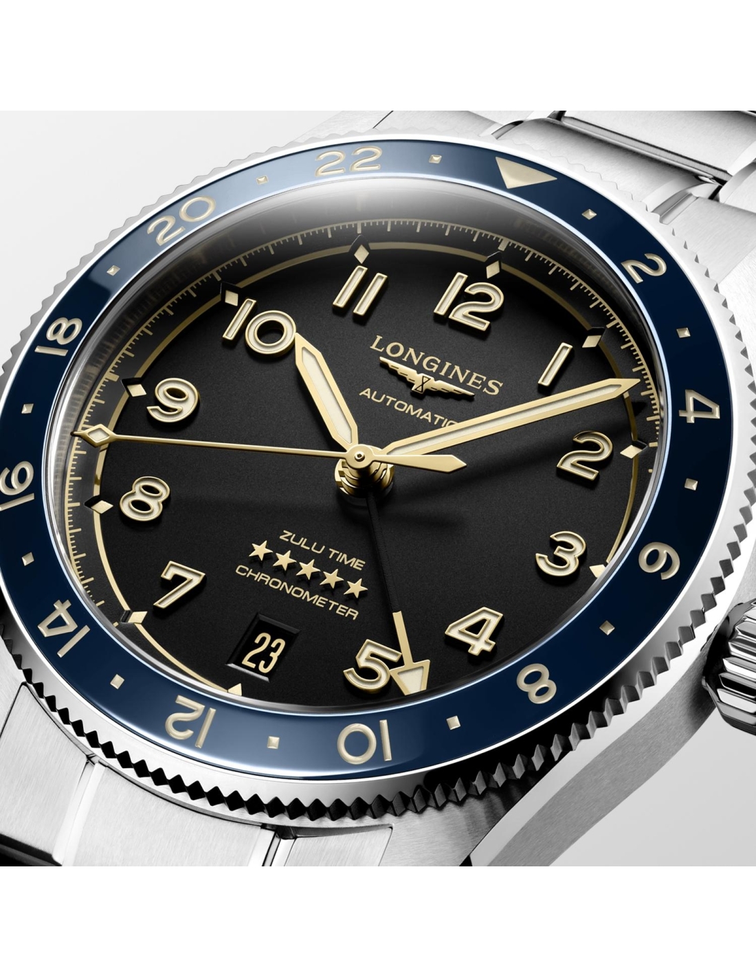 Longines Spirit Zulu Time, Automatico GMT, diam. 39.00 mm, Acciaio inossidabile e lunetta in ceramica.